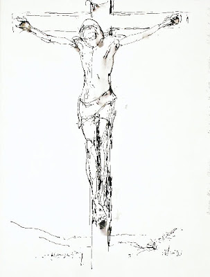 Encuentro la "Crucifixión" de Antonello con facilidad, colgada al nivel de los ojos, a la izquierda de la entrada a la sala. Lo que resulta tan notable de las cabezas y los cuerpos que pintó no es sólo su solidez, sino la forma en que el espacio pintado circundante ejerce presión sobre ellos y la manera en que éstos luego resisten esa presión. Es esa resistencia lo que les da una presencia tan concreta e indiscutible. Después de mirar un largo rato, decido tratar de dibujar sólo la figura de Cristo. Algo a la derecha de la pintura, cerca de la entrada, hay una silla. La hay en toda sala de exposición, y es para los vigilantes oficiales de la galería, que observan a los visitantes, les advierten si se acercan demasiado a una pintura y contestan preguntas. [...] Los vigilantes siempre tienen dos o tres salas a su cargo, por lo que van de una a otra. La silla junto a la "Crucifixión" por el momento está vacía. Después de sacar mi cuaderno, una lapicera y un pañuelo, coloco con cuidado mi mochila sobre la silla. Empiezo a dibujar. Corrijo error tras error. Algunos triviales. Otros no. La cuestión más importante es la escala de la cruz en la página. Si eso no está bien, el espacio circundante no ejercerá presión alguna y no habrá resistencia. Dibujo con tinta y me humedezco el dedo índice con saliva. Mal comienzo. Doy vuelta la página y empiezo de nuevo.No voy a cometer el mismo error otra vez. Cometeré otros, por supuesto. Dibujo, corrijo, dibujo. Antonello pintó en total cuatro Crucifixiones. La escena a la que más volvió, sin embargo, fue a la de Ecce Homo, donde Cristo, liberado por Poncio Pilatos, se ve expuesto a las burlas y oye a los sumos sacerdotes judíos pedir su crucifixión. Pintó seis versiones, todas ellas retratos de la cabeza de Cristo sufriente. Tanto el rostro como su pintura son firmes. La misma tradición lúcida siciliana de poner a prueba las cosas sin sentimentalismo ni complacencia.¿El bolso que está en la silla es suyo? Miro a un lado. Un guardia de seguridad armado mira con severidad y señala la silla. Sí, es mío. ¡No es su silla! Lo sé. Puse el bolso ahí porque no había nadie sentado. Lo retiraré de inmediato. Levanto el bolso, doy un paso a la izquierda hacia la pintura, me pongo el bolso entre los pies, en el piso, y vuelvo a mirar mi dibujo. Su bolso no puede estar en el piso. Puede revisarlo. Aquí está la billetera y estas son cosas para dibujar, nada más. Abro el bolso. El guardia se da vuelta. Dejo el bolso en el suelo y empiezo a dibujar otra vez. A pesar de su solidez, el cuerpo que está en la cruz es muy delgado. Más delgado de lo que se puede imaginar antes de dibujarlo. Se lo advierto. Ese bolso no puede seguir en el piso. Vine a dibujar esta pintura porque es Viernes Santo. Está prohibido. Sigo dibujando. Si insiste, dice el guardia de seguridad, llamaré al supervisor. Levanto el dibujo para que pueda verlo. Tiene cuarenta y tantos años. Macizo. De ojos chicos, u ojos que achica al adelantar la cabeza. Diez minutos, digo, y termino. Llamaré al supervisor ya mismo, dice. Escuche, contesto, si hay que llamar, llamemos a alguien del personal de la galería, y con un poco de suerte van a explicar que no hay problema. El personal de la galería no tiene nada que ver con nosotros, dice entre dientes. Somos independientes y nos ocupamos de la seguridad. ¡Seguridad, las pelotas! Pero no lo digo. Empieza a pasearse lentamente de un lado a otro, como un centinela. Yo dibujo. Ahora estoy dibujando los pies. Cuento hasta seis, dice, y luego llamo. Se acerca el celular a la boca. ¡Uno! Me lamo el dedo para hacer el gris. ¡Dos! Corro la tinta sobre el papel con el dedo para marcar el hueco oscuro de una mano. ¡Tres! La otra mano. ¡Cuatro! Avanza hacia mí. ¡Cinco! Póngase el bolso al hombro. Le explico que, dado el tamaño del cuaderno de dibujo, si hago eso no podré dibujar.¡ El bolso al hombro! Lo levanta y lo sostiene ante mis ojos. Cierro la lapicera, tomo el bolso y digo mierda en voz alta. ¡Mierda! Abre los ojos y mueve la cabeza sonriendo. Lenguaje obsceno en un lugar público, anuncia, nada menos. Vendrá el supervisor. Distendido, da lentas vueltas por la sala.Dejo caer el bolso al suelo, saco la lapicera y echo otra mirada al dibujo. La tierra tiene que estar ahí para limitar el cielo. Con unos pocos toques indico la tierra. En una "Anunciación" que pintó Antonello, la virgen está de pie ante un estante en el que hay una biblia abierta. No hay ángel. Un retrato de la cabeza y los hombros de María. Los dedos de las dos manos colocados sobre el corazón están abiertos como las páginas del libro profético. La profecía pasa entre sus dedos. Cuando el supervisor llega, se para, brazos en jarra, más o menos detrás de mí, y anuncia: Abandonará la galería escoltado. Insultó a uno de mis hombres, que estaba haciendo su trabajo, y gritó palabras obscenas en una institución pública. Ahora va a caminar delante de nosotros hasta la salida principal. Supongo que sabe el camino. Me escoltan escaleras abajo hasta la plaza. Ahí me dejan, y suben con energía los escalones, ya cumplida la misión. Aquí está el dibujo.